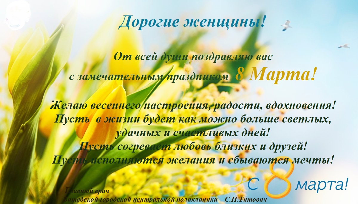 Первичная организация ОО «Белорусский союз женщин» ГУЗ «ВГЦП» поздравляет вас с прекрасным Днем матери! Желаем вам и вашим детям приносить друг другу как можно больше радости, добра и счастья, находить взаимопонимание и поддержку в любой ситуации. Пусть у Вас будет много ярких и интересных семейных событий, которые объединяют и делают жизнь краше. А также терпения и сил вам, чтобы с легкостью справляться со всеми домашними делами и работой. Желаем вам быть самыми счастливыми в кругу ваших детей и семьи! Пускай в вашей душе никогда не будет места тревогам. Пускай в ней живут лишь любовь и гордость за ваших ребят. Будьте здоровы и безгранично любимы! С Днем матери!