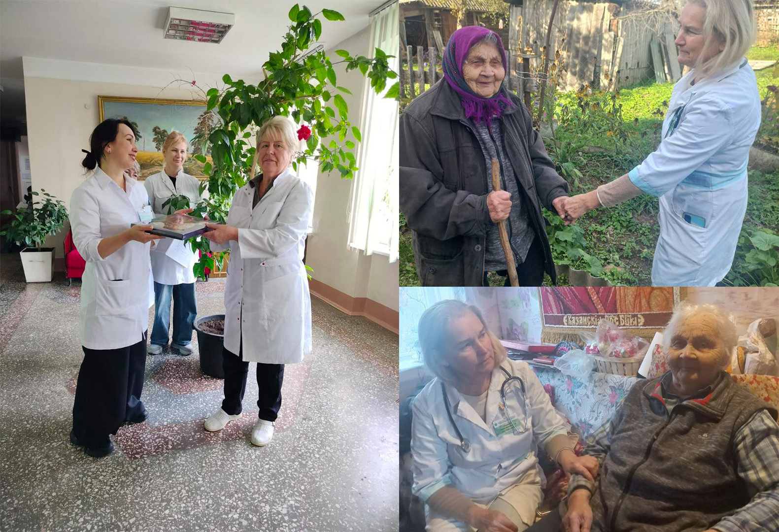 1 октября – важная и трогательная дата в календаре. Повод сказать слова признательности и благодарности представителям старшего поколения за жизненный опыт и поддержку, за любовь и заботу. В Филиале №7 – поликлиника №7 ГУЗ «ВГЦП» заведующая Татьяна Бодрицкая и коллектив поздравили своих старших коллег, а также вручили сладкие подарки от первичной профсоюзной организации учреждения здравоохранения. С особой теплотой сотрудники Запольской АВОП Филиала №7 Евгения Балашкова, Татьяна Бутьянова, Галина Трощенко поздравили с Днём пожилого человека своих долгожителей: 98-летнюю Зою Тимофеевну Яроцкую и 83-летнюю Наталью Ивановну Рубанькову