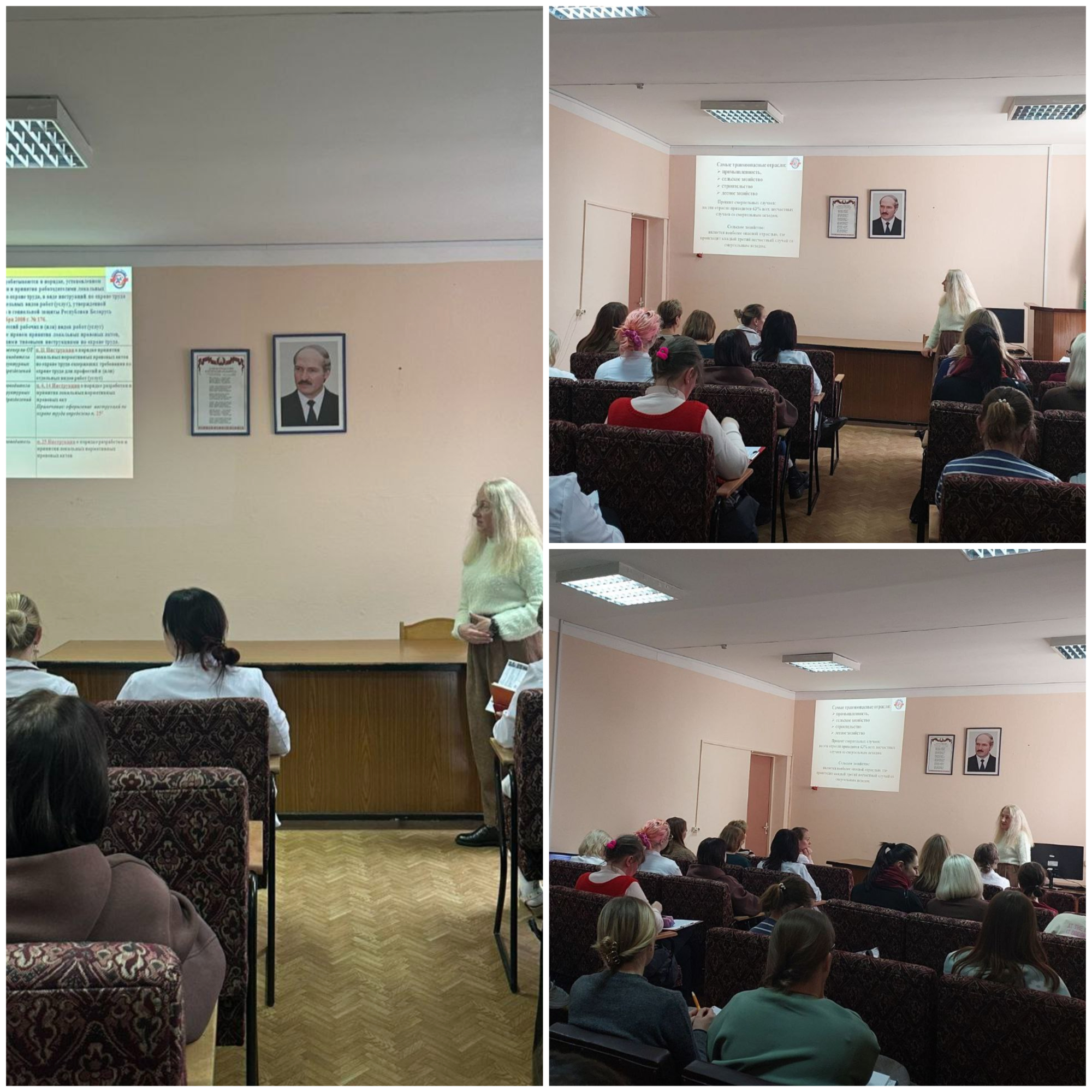 Охрана труда в медицинских учреждениях - под таким названием 29 октября в Филиале 7 -поликлиника 7 ГУЗ "ВГЦП" прошел обучающий семинар с участием руководителей структурных подразделений всех Филиалов. В своём выступлении Инна Тихомирова, заведующий Витебским областным организационно-методическим центром по охране труда, подчеркнула роль неукоснительного соблюдения норм охраны труда в обеспечении безопасности, здоровья и благополучия как работников, так и пациентов в организациях здравоохранения.