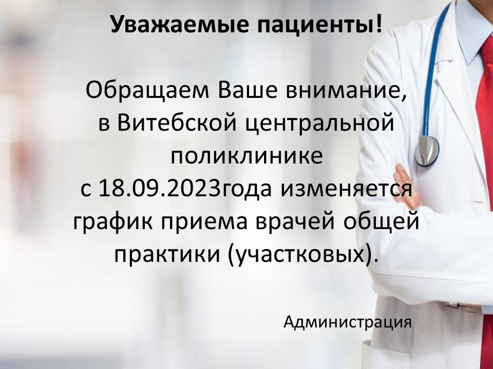 Витебской центральной поликлинике, г. Витебск, ул. Генерала Маргелова, 2.
